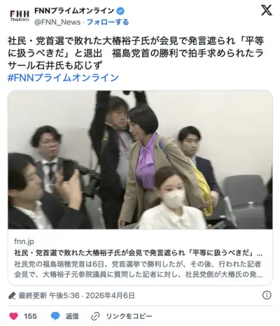 【gdgd】社民党首に瑞穂→大椿は党に発言を阻止され退出、それを理由にラサールは拍手拒否