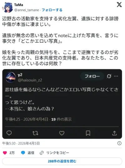 【悲報】辺野古の遺族が公開した写真にパヨク「悲壮感煽るのにこんなエロい写真?本当に娘さんの為?」