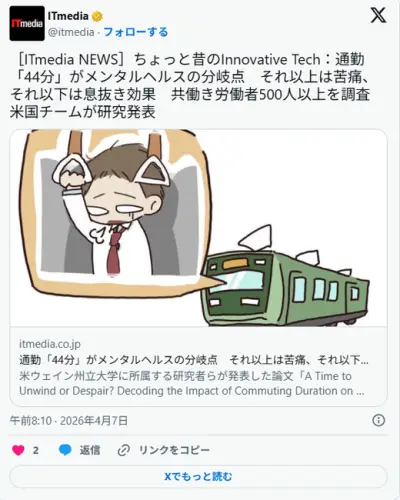 通勤時間「44分」がメンタルヘルスの分岐点。それ以上は鬱るぞ