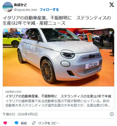 イタリア車が売れない… 生産台数激減でイタリア政府が危機感