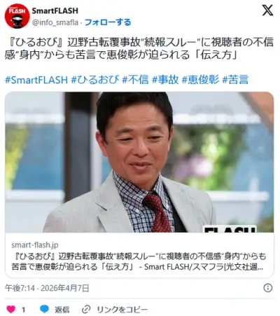 【テレビ】TBS『ひるおび』、辺野古転覆事故“続報スルー”に視聴者の不信感 身内からも苦言で恵俊彰が迫られる「伝え方」