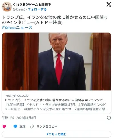 トランプ大統領「イランの停戦合意に中国が貢献してくれた」 西側の使い物にならないゴミとの差wwww