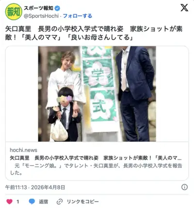 【芸能】矢口真里 長男の小学校入学式で着物姿に 息子と夫の家族ショット披露「美人のママ」「良いお母さんしてる」