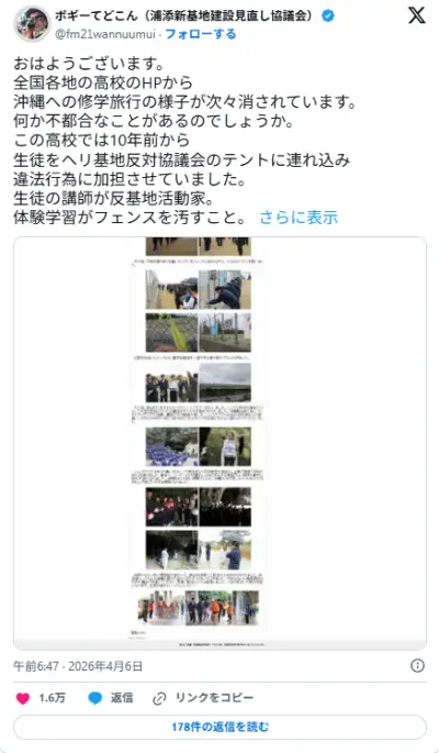 【平和学習】全国各地の高校のHPから沖縄修学旅行の様子が次々と消されている模様