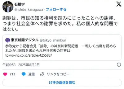 神奈川新聞川崎総局編集委員石橋学さん「謝罪要求は市民の知る権利を踏みにじったから」