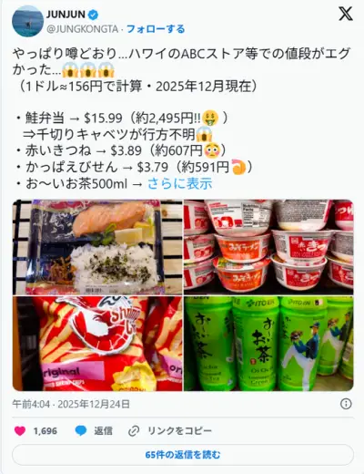ハワイ、スーパーで390円で売ってそうな不味そうな弁当が2495円もして貧困日本人卒倒