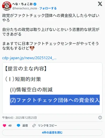 立憲民主党、SNS対策としてファクトチェック団体に資金提供で囲い込みへ CLPの反省ないのか