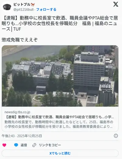 小学校女性校長、校長室でチューハイ2本飲酒・会議中の居眠りで停職1年
