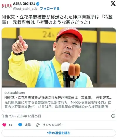 NHK党・立花孝志 極寒地獄と言われる神戸拘置所へ移送『あそこへ行って帰ってきた奴はいない』