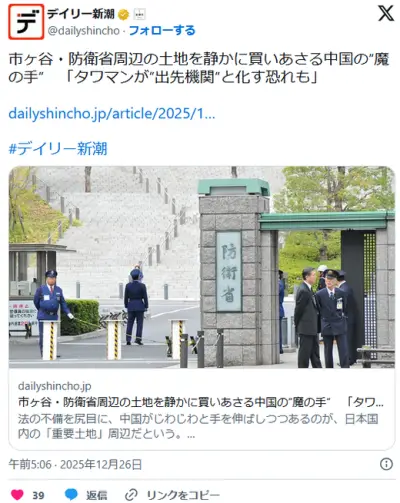 市ヶ谷・防衛省周辺の土地を静かに買いあさる中国の”魔の手” 「タワマンが”出先機関”と化す恐れも」