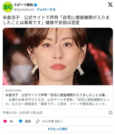 米倉涼子、声明を発表 「事実です」