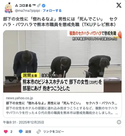 女の部下に抱きつき「俺に惚れるなよ」男の部下に「金よこせ」とやりたい放題の男クビにwwwwww