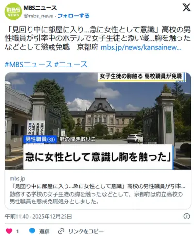 女子高生「添い寝してほしい」男性職員が添い寝中にJKオッパイ揉み懲戒←これハニトラだろ