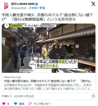 京都のホテル、中国人が来なくなり過去例にない値下げ合戦wwwwwwwwwwww