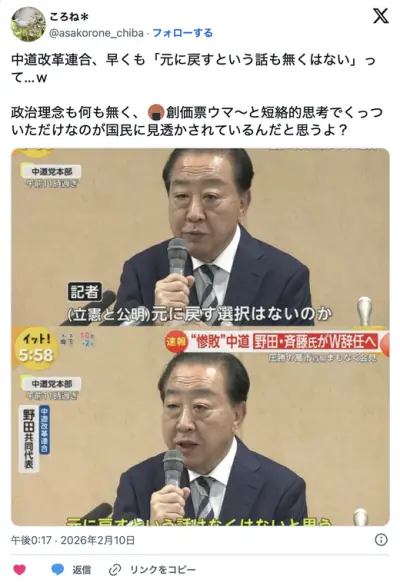 【大爆笑】中道・野田佳彦さん「そうだ!立憲と公明に戻さない?」