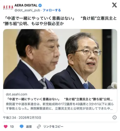 そしてリベラルがいなくなった… 中道改革連合が陥った「候補者名より政党名」戦略のワナ