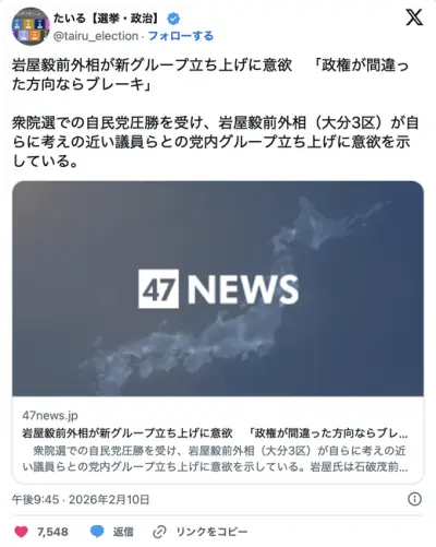 岩屋毅前外相が新グループ立ち上げに意欲 「政権が間違った方向ならブレーキ
