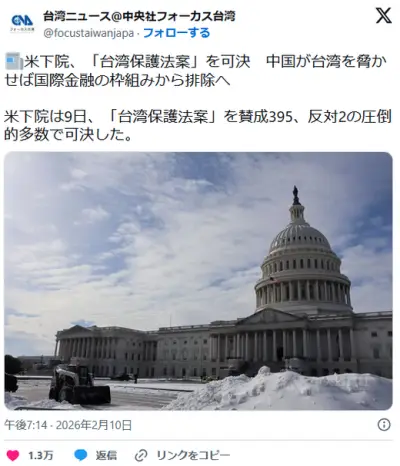 【国際】「台湾保護法案」可決、中国が台湾を脅かせば国際金融の枠組みから排除へ、米下院