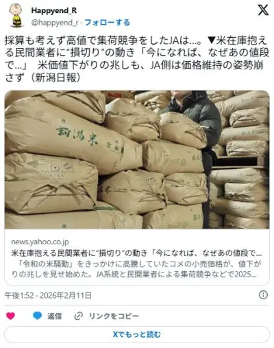 コメ集荷・卸「今になってみれば、なぜあの値段で頑張って集めたんだろ…」