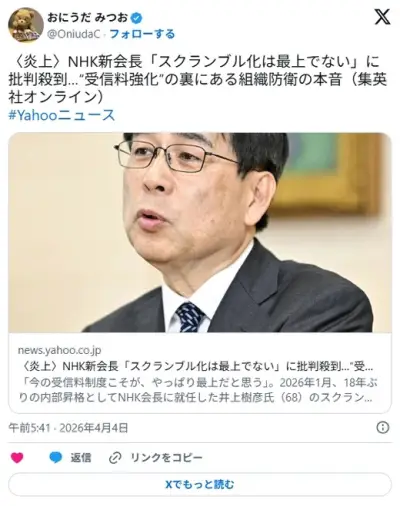 〈炎上〉NHK新会長「スクランブル化は最上でない」に批判殺到