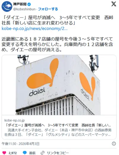 【スーパー】「ダイエー」屋号が消滅へ 3~5年ですべて変更 西峠社長「新しい店に生まれ変わらせる」