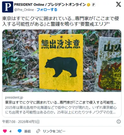 【(・(ェ)・)】東京はすでにクマに囲まれている…専門家が「ここまで侵入する可能性がある」と警鐘を鳴らす"要警戒エリア"