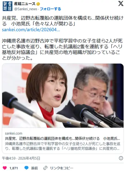 日本共産党、女子高生を死なせた抗議船船長が共産党なのを隠蔽していた 遺族への謝罪もなし