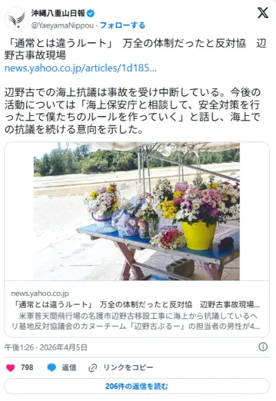 【辺野古転覆】反対協「万全の体制だった。あんな不幸は誰も信じていない」「急に波が来たので」