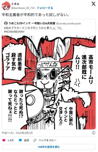 反戦デモ予定プラカードに「謝ったら死ぬ?ならとっとと死ね!!」文言で批判集中