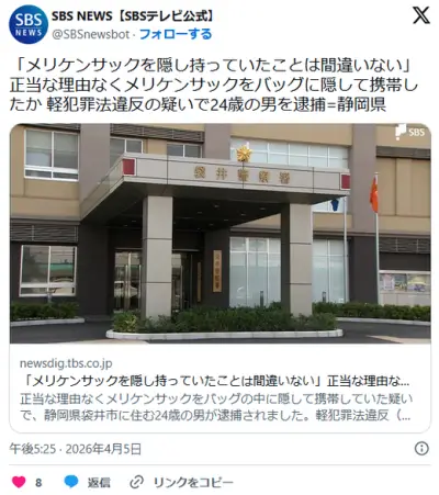 正当な理由なくカイザーナックルをバッグに隠して携帯したか 軽犯罪法違反の疑いで24歳の男を逮捕