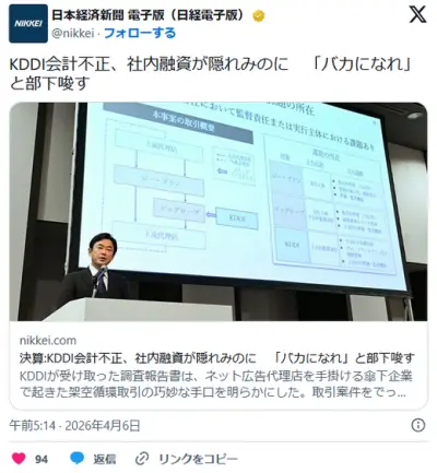 KDDI会計不正、社内融資が隠れみのに 「バカになれ」と部下唆す