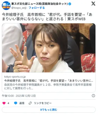 【君が代】今井絵理子氏 高市首相に国歌として統一した手話表現を定めることを要望→「あまりいい答弁にならない」と返される