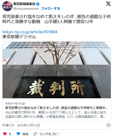 育児放棄され塩をなめて飢えをしのぎ…被告の過酷な子供時代と身勝手な動機 山手線5人刺傷で懲役12年 (東京地裁)