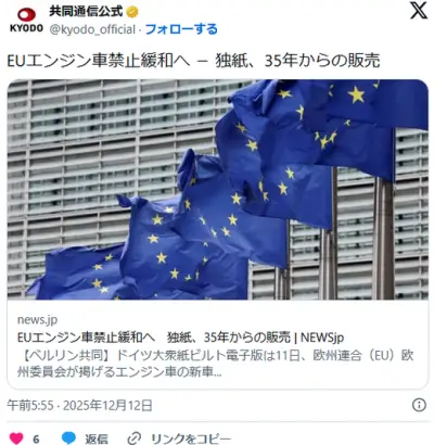 EU、エンジン車販売禁止を緩和へ。EVがあまりにも駄目なため