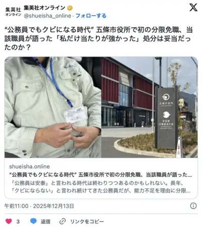 【悲報】無能すぎて市役所を分限免職(クビ)になったまんさん「私にだけ当たりが強かった。これは差別」ww