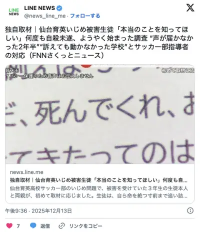 【広陵よりひどい】仙台育英サッカー部イジメ 被害者自殺寸前 サッカー部顧問まで被害者に恫喝 廃校へ