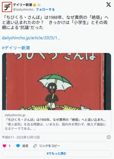 「ちびくろさんぼ」はなぜ異例の絶版へと追い込まれたのか? ダッコちゃん人形や、「くろんぼ公園」のどこに問題が