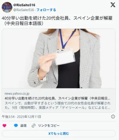 スペイン企業、毎朝40分早く出勤していた社員をクビにする