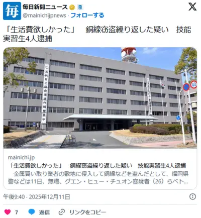 【福岡県警】グエン容疑者ら4人を逮捕 スクラップヤードに侵入し銅線などを盗む