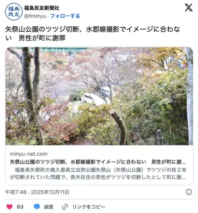 また撮り鉄、矢祭山公園のツツジ切断、水郡線撮影でイメージに合わない 男性が町に謝罪