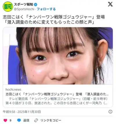 【特撮】今森茉耶降板の「ナンバーワン戦隊ゴジュウジャー」代役・志田こはく初登場 「潜入調査のために変えてもらったこの顔と声」