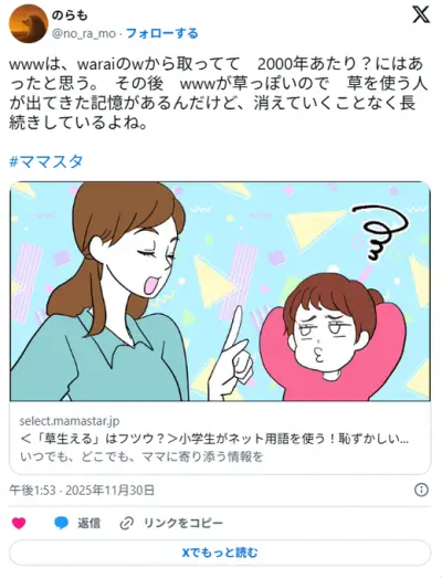 ママ「娘が会話で『~草』と使うので止めてと言っても止めてくれません。どうしたらいいですか?」