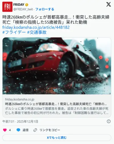 車カスのポルシェ彦田「アウトバーンではポルシェが268km出すのは普通。日本の道路が悪い。無罪」