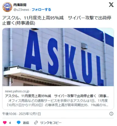アスクルの売上高 95%も減ってしまう