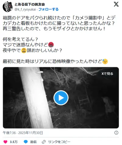 人間の命より熊が大事。動物愛誤さんが実力行使。深夜に箱罠のドアを盗ってしまう。