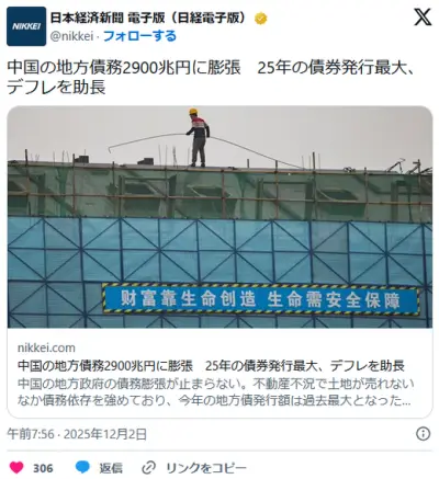 中国の地方債務2900兆円 膨張が止まらない・・・