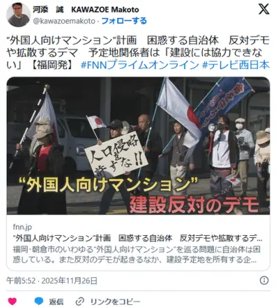 【福岡】朝倉市“外国人向けマンション”計画 困惑する自治体 反対デモや拡散するデマ 予定地関係者は「建設には協力できない」