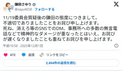 立憲議員「誹謗中傷で精神的ダメージを受けたので謝罪が遅れました」 ←無事、再炎上