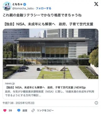 【速報】高市早苗「NISAを0歳から運用可能にする」wwwwwwwwwwwwwwwwwwwwwwww