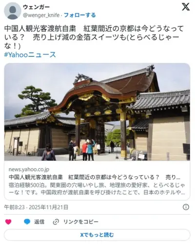 中国人観光客渡航自粛 紅葉間近の京都は今どうなっている? 売り上げ減の金箔スイーツも